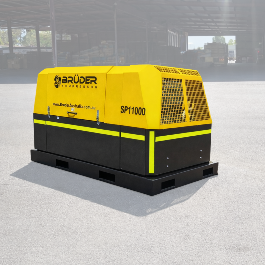 The SP11000 is Brüder’s high-capacity 388cfm diesel rotary screw compressor engineered for major civil construction, infrastructure projects and high-demand industrial sites.